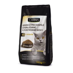 4,84 €CARNIS fleshy poultry granules are ideal for sterilized and neutered cats, as they have been developed specifically to support healthy urinary tract. They contain the necessary proteins to ensure good physical condition, but also beet pulp to promote proper digestion, thanks to which the cat will not excessively gain weight. Complete and balanced feed also includes: