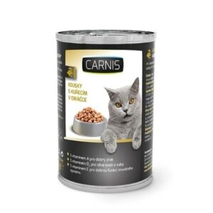 0,00 €Carnis pieces with chicken in sauce is a complete food for adult cats. Fluffy chicken pieces in sauce are made from high-quality, easily digestible ingredients, so they represent a tasty and balanced diet. The feed contains important vitamins and minerals in an optimal ratio, which are indispensable for the proper functioning of the organism, important for its regeneration and detoxification.