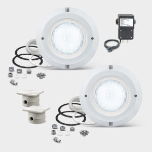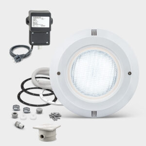 629,20 €PAR56 Recessed Underwater Spotlight with 20W White LED Bulb. High-quality underwater spotlights made of impact- and pressure-resistant ABS for installation in straight pool walls, rectangular pools, and the straight sides of oval pools. Each spotlight is equipped with a modern, energy-efficient LED bulb with a 316LV4A stainless steel backplate, producing a very bright light of approximately 2,000 lumens at a maximum power consumption of 20W. For oval or rectangular pools, the spotlight is designed for…